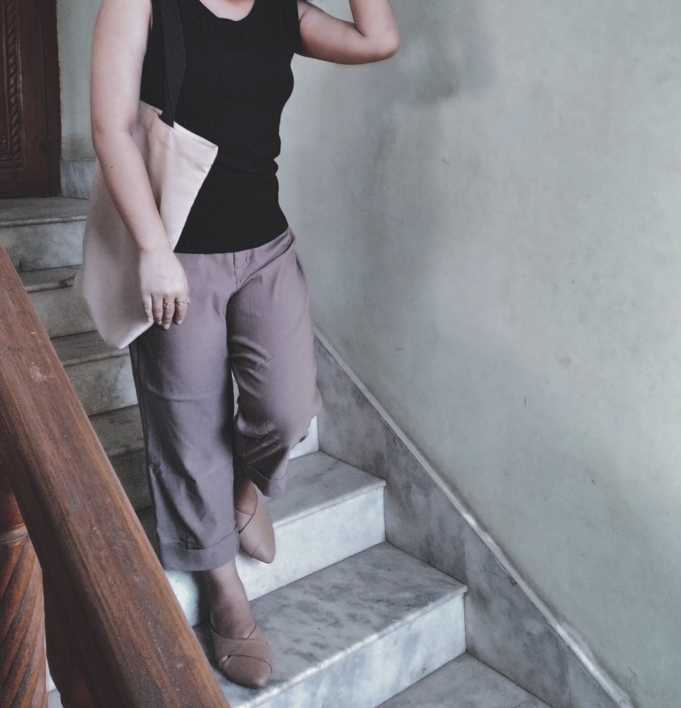 - Pants: Classic Brown Capri Pants (to be more comfortable, go for wide legged ones)