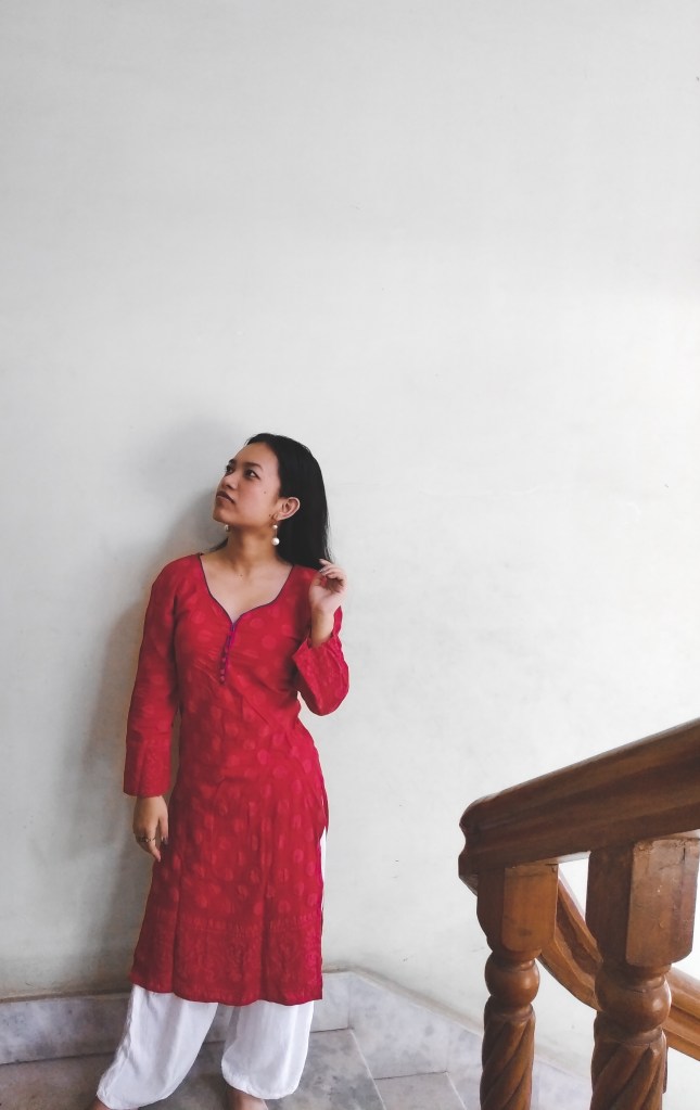 For the second look, I went with one of my favourite Straight Cut Cotton Red Kurta. I don’t usually wear bold colours like red but the combination with white is a giant YES for me. The material is 100% cotton which is exactly what you need for feeling comfortable and fabulous at the same time. Honestly, I have lost track of how many times I’ve worn this kurta.